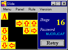 SLIDE 2 ver 1.00 (99.08/20) 53.5KB VB5 ■ SLIDEの続編。さらにボリュームアップして、200面×2周+α。斜め方向のスライドも加わって、難易度も上がりました。 |
