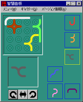 智慧曲板 ver 1.01 (98.09/19) 47.3KB VB5 ■ 「ピースを盤にはめる」というポピュラーなパズル。果たして、君はいくつ完成パターンを見つけられるか? |