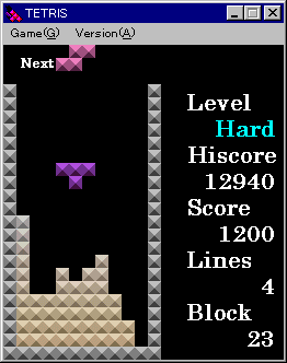 TETRIS ver 2.02 (99.05/09) 204KB VB5 ■ 言わずと知れた、超有名アクションパズル。目指せテトリスマスター! TETRIS (c) 1987 Elorg. Original Concept & Design By Alexey Pajitnov |