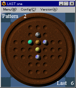 LAST one ver 1.02 (99.10/27) 78.4KB VB5 ■ 盤上に配置された球を一つだけにする。エレガントな雰囲気のパズルゲーム。2タイプの盤で各100面。 |